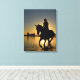 Fille à cheval galopant le long de l'eau. Impression de toile 16x20 pouces.