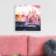 Un superbe lever de soleil se lève dans la splendeur dorée, rose et violette d'un château de conte de fées au bord de l'océan.