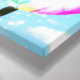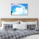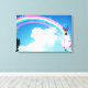 Une petite fée de jardin jette un sort sur une fleur pour fleurir, la fleur s'ouvre et sort un arc-en-ciel.
