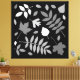Les feuilles tombés sont conçus dans différentes silhouettes de feuilles en gris et blanc sur un arrière - plan noir.