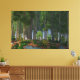 Un stand d'arbres par beau temps. Les grands arbres sont grands et sombres, mais les jeunes pousses en dessous ont une nouvelle croissance lumineuse. En grandissant à travers les feuilles déchus sont le vert et rose et blanc de trèfle et d'autres couvertures de sol.
