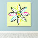 Design Feuille moderne et abstrait, avec une fleur, ses pétales de feuilles colorés avec centre jaune sur arrière - plan vert pâle. Deux en noir, jaune, deux en noir, aqua/turquoise, deux en noir, rose fushia et deux en noir, vert citron. Dans chacune d'elles il y a des feuilles blancs plus petits. Cette impression carré d'inspiration abstraite de nature a une atmosphère rétro et est entièrement personnalisable.