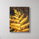 Photographie botanique frappante d'une fronde de fougère jaune doré. Les feuilles d'automne sont devenues jaunes avec des traces de brun. Le soleil met la fougère en valeur afin qu'elle se démarque du sol boisé foncé. Pour voir la photo de la nature d'automne sur d'autres articles, cliquez sur le lien "Rocklawn Arts". Photo numérique, couleur. Copyright ©Claire E. Skinner. Tous droits réservés.