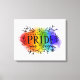 Cette oeuvre colorée présente le mot Pride sur une aquarelle douce.