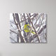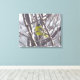 Oiseau jaune assis dans les branches d'hiver nues d'un arbre. Le dessus de la tête est noir, les ailes sont brunes et blanches, la plupart des plumes du corps sont jaunes. La couleur contraste agréablement avec les membres arrière - plans gris et les branches grises avec des pointes rouges.