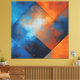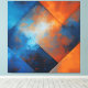 Geometric abstract art with diagonal panels in deep blue and vibrant orange. Texture resembling oxidized metal or reflected sky. Perfect for modern decoration and wall art. A sophisticated fusion of warm and cool colors in a dynamic composition that brings energy and style to any environment.