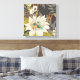 Tropical Twilight II par Juin Erica Vess. Cet art présente des fleurs en fleurs dans des tons variés et muets avec un arrière - plan gris foncé de différents feuilles tropicaux. | 153021Z