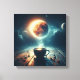 The warm moonlight reflecting on the coffee’s surface adds a sense of tranquility and depth, while distant planets and stars illuminate the atmospheric background with ethereal beauty. This high-contrast surreal design celebrates the artistry of imaginative visuals, making it ideal for modern interiors, contemporary bedrooms, creative offices, and cozy coffee corners. The composition of glowing celestial bodies and grounded elements evokes harmony, peace, and limitless inspiration, turning any wall into a statement of creativity.