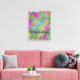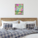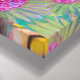 De belles fleurs sont représentées dans cette oeuvre d'art abstraite présentant diverses estampes et des motifs aux couleurs analogues, donnant un bel exemple de médias mixtes.