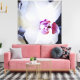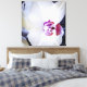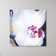 Cette photo numérique en couleur sur toile étirée présente un gros plan d'une orchidée blanche au centre violet et rouge.