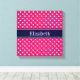 Toile Framboise Blanc Pois Marine Nom bleu Monogramme
