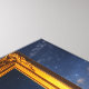 A floating frame encloses a glowing futuristic city, as if it were a living painting.