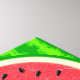 Ce joli motif de pastèque a un fruit rond qui semble avoir été tranché, donc la chair rose-rouge juteuse du melon se montre à travers, avec beaucoup de graines de pastèque noire. La baie a également une croûte verte mouchetée. C'est un design estival mignon et capricieux.