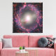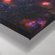 Galaxie spirale NGC 3351. Le gaz moléculaire dense est montré dans le magenta. De jeunes étoiles massives illuminent leur environnement en rouge. Les voies de poussière sont surlignées d'étoiles blanches et nouvellement formées en bleu.