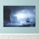 Revenez à l'ère héroïque de l'exploration avec cette représentation évocatrice d'une nuit antarctique. Un navire d'explorateur solitaire, sillonné de voiles, est à l'ancre dans les eaux calmes et glaciales, un minuscule témoignage du courage humain face à un paysage écrasant. D'un côté, les parois rocheuses abruptes, anciennes et sombres, s'élèvent précipitamment des profondeurs encaissées. De l'autre, les murs colossaux de la tour de glace lumineuse, leurs surfaces attrapent la lumière éthérée d'une pleine lune. Le clair de lune baigne la scène dans une lumière crue et spectaculaire, sculptant des ombres et mettant en évidence l'immense échelle du continent gelé. Cette oeuvre illustre un moment d'isolement profond, de grandeur à couper le souffle et de détermination tranquille de ceux qui osaient s'aventurer dans l'inconnu. Cette pièce est une vision singulière d'une époque charnière dans la découverte, qui en fait une acquisition fascinante pour les amateurs d'histoire, les amateurs d'art maritime, ou toute personne attirée par la beauté brutale et majestueuse des extrêmes polaires de la Terre.