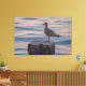 Un goéland occidental juvénile se dresse au sommet d'un poteau en béton patiné. L'oiseau a des plumes grises et brunes et un bec foncé. Le billet montre des signes d'âge avec des taches de rouille et une texture rugueuse. L'arrière - plan dispose d'un plan d'eau avec des vagues douces, reflétant des teintes douces rose et bleu du ciel. L'ambiance générale est calme et sereine.