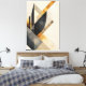 Sophisticated abstract composition with geometric shapes in black, gray and gold tones. The intersection of triangles and rectangles creates visual depth and movement. Perfect for modern environments seeking elegance and personality. Every detail is a statement of contemporary art.