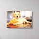 A 12 week-end, vieux Golden Retriever puppy rests with a plush basketball toy between his paws in his owner's home.