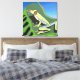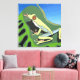 Cette toile colorée présente ma conception simple d'une grenouille verte sur une feuille de jungle contre un ciel bleu vif. Parfait pour égayer un mur uni ou un beau cadeau pour un amoureux de la grenouille.
