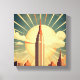 Bold, radiant, and symbolic, Hightower Sunrise reimagines the American metropolis as myth. A towering skyscraper—reminiscent of the Empire State Building—stands at the heart of the composition, cutting cleanly into a monumental rising sun. Beams of golden light stretch outward in dramatic symmetry, echoing vintage propaganda and travel posters of the early 20th century.