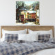 Magnifique peinture vintage de l'impressionniste américain, Frederick Mulhaupt de l'hiver à Gloucester, Massachusetts avec chariot et chevaux sur une rue de ville bordée de neige.
