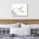 A colorful Hummingbird, flying free among the flowers. Style Pencils and watercolor.