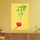 Illustration d'une aquarelle d'art végétal radis par l'artiste Sacha Grossel. Cet art végétal coloré et vibrant égayerait votre maison, cuisine ou restaurant. Il représente un radis organique rouge et vert dans le genre de l'art des fruits et légumes.