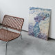 Vase florale texturée classique toile d'illustration Imprimer avec différentes couleurs harmoniques de bleu, beige et vert.