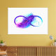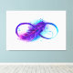 Infinity symbole with a beautiful feather painted in purple and blue bright colors on white background