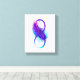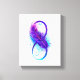 Infinity symbole with a beautiful feather painted in purple and blue bright colors on white background