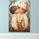 Une scène pleine de chaleur et de tendresse montrant deux jeunes garçons partageant un baiser innocent au milieu d'une toile de fond de branches chargées de pommes et de papillons flottants. Capturée dans un style qui rappelle Norman Rockwell et J.C. Leyendecker, cette oeuvre d'art dégage charme et nostalgie, célébrant la pureté et la beauté de l'enfance.