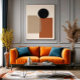 Une composition minimaliste qui explore l'harmonie entre les formes géométriques et les tons terreux. L'intersection subtile du cercle noir avec des rectangles translucides suggère équilibre, contraste et introspection dans un espace visuel calme.