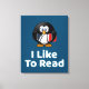 Mignons et drôles "I Like To Read" manchot tenant ses livres.