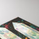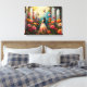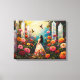 Une femme en robe ornée de fleurs se dresse dans un jardin animé entouré de fleurs colorées et de hautes structures en cristal. Les colibris flottent au-dessus d'elle sous un ciel lumineux, ajoutant à l'atmosphère enchanteresse.