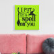 Ce design classique d'Halloween comporte l'expression éffrayante "Je mets un sort sur vous" dans une police audacieuse d'inspiration gothique. Les couleurs noir et blanc rehaussent l'atmosphère étrange, rendant le design parfait pour la saison d'Halloween. Le texte est accompagné d'éléments de sorcellerie iconiques, dont un casquette de sorcière pointu, un bâton de brosse, une toile d'araignée et une minuscule araignée, tous arrangés pour créer une composition de sorcière. Le détail subtil des points autour du texte ajoute une touche de charme magique.