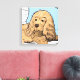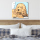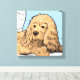 Voici une toile enveloppée mignonne pour quiconque aime les espagnols, particulièrement les cocker espaniels. Il présente une illustration d'un spaniel cocker brun clair appuyé sur un coussin bleu. Une décoration amusante pour la chambre d'un petit garçon.