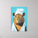 Portrait charmant et fantaisiste d’un capybara, le plus grand rongeur du monde, habillé en tenue spa. L'animal est drapé dans une serviette blanche avec un autre enveloppé autour de la tête, dressé contre un arrière - plan bleu apaisant. L’expression calme et sereine du capybara donne l’impression de profiter d’un moment de détente, ajoutant une touche d’humour et de chaleur à la scène. Le brossage détaillé met en valeur la fourrure du capybara et la texture douce des serviettes, faisant de cette oeuvre une pièce délicieuse et légère.