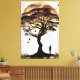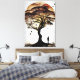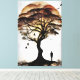 Un arbre imposant, ses racines entremêlées comme des souvenirs anciens, garde des secrets parmi les feuilles dorés et rougeâtres. Une silhouette humaine observe, tandis que les oiseaux volent librement, unissant la nature et l'âme dans une étreinte poétique. Chaque coup de pinceau d'aquarelle est un soupir de paix, nous rappelant que la vie pousse dans les racines et les rêves.
