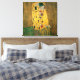 Le Kiss (Lovers) a été peint par le peintre symboliste autrichien Gustav Klimt entre 1908 et 1909, point culminant de sa "période d'or", lorsqu'il peignit un certain nombre d'oeuvres dans un style doré similaire. Carré parfait, la toile représente un couple d'embrassades, leurs corps entrecoupés de robes travaillées, décorés dans un style influencé à la fois par les constructions linéaires du style Art Nouveau contemporain et les formes organiques du mouvement Arts et Artisanat précédent. L'oeuvre est composée de peinture à l'huile avec des couches appliquées de feuille d'or, un aspect qui lui donne son aspect étonnamment moderne, mais évocateur. Le tableau se trouve maintenant dans le musée Österreichische Galerie Belvedere du palais du Belvédère, à Vienne, et est largement considéré comme un chef-d'oeuvre de l'époque moderne. Symbole du Jugendstil de Vienne, l'Art Nouveau viennois, il est considéré comme l'oeuvre la plus populaire de Klimt.