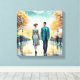 Un homme et une femme se croisent dans la rue de Londres en se brossant les mains pendant qu'ils passent. Une rencontre romantique.