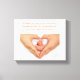 Toile pour souvenir de son enfant étoilé : Les mains sur les pieds de bébé en forme de coeur Texte : Tenir ce qu'on ne peut pas tenir, comprendre ce qui est incompréhensible, porter dans le coeur ce qui est éternel.
