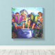 Art de la lecture estivale de Traci Van Wagoner présente un garçon et une fille assis dans un jardin urbain, les pieds dans un bain cool, en train de boire de la limonade et de lire des livres. Un chat et un chien s'allongent à leurs pieds sur le pont de bois. Parfait pour les amateurs de livres et de bibliophiles de tous âges.
