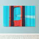 L'image montre une section du pont du Golden Gate, peinte dans sa couleur rouge-orange signature, avec un escadron des avions Blue Angels volant à travers l'ouverture. Les avions laissent des contrails blancs contre un ciel bleu clair. La structure du pont est bien exposée, avec ses câbles verticaux et ses détails architecturaux.