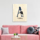 Le design fantastique pour les amoureux de tous âges d'Alice au pays des merveilles comprend la lettre majuscule / initiale A avec remplissage en arlequins noir et bleu et l'illustration originale en lapin blanc qui a été teinte, sur un arrière - plan de panneau de bois faux. Personnaliser avec le nom ou un autre message