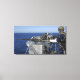 Un maté de la marine américaine tire une mitrailleuse de calibre 50 lors de l'entraînement à bord de l'USS Boxer avec des bateaux.