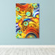 Une explosion dynamique de couleurs et de formes jaunes et bleues se tisse, créant une composition abstraite dynamique. Les tourbillons, les cercles et les lignes se chevauchent avec un sens dynamique du mouvement et du rythme. Le tableau sera bien en position horizontale ou verticale.
