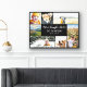 Toile imprimée avec huit de vos photos encadrées par une bordure noire. L'amour du rire vivant est écrit dans un script de calligraphie blanche, les coeurs séparant les mots. Ajoutez votre nom de famille dans une charmante police manuscrite.
