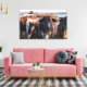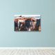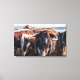 Groupe de bovins anglais Longhorn à la mangeoire en hiver.
