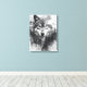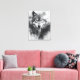Le loup gris Wrapped Canvas Print a un beau loup gris qui vous regarde avec un fond orange et vert. C'est magnifique sur cette toile enveloppée