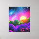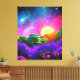 Paysage artistique Abstrait inspiré de l'espace et de la nature tropicale. Mélange de couleurs magiques comme le violet, le vert et le rose. Style idéal pour le salon, la chambre ou la chambre pour enfants.
